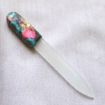 Glass nail files are small enough to carry in your purse. They are made of glass and will last much longer than the traditional metal files. Use them, rinse with soap and water and then they are ready to use again.